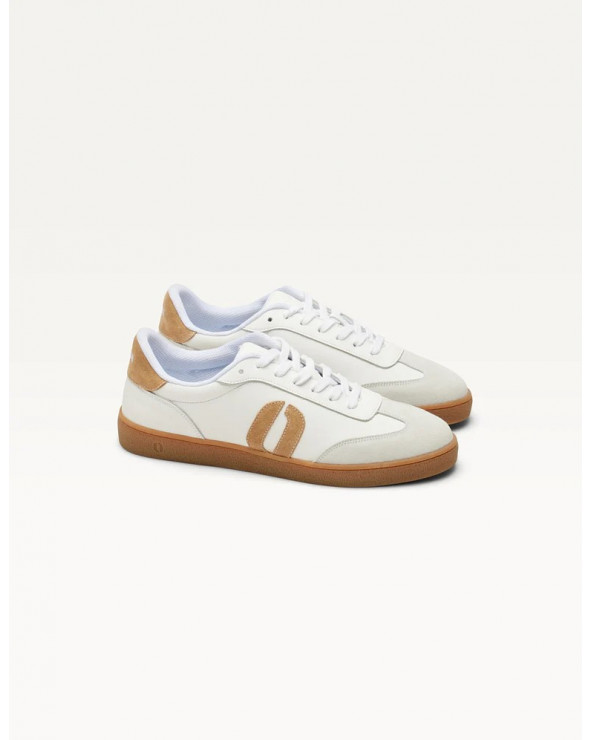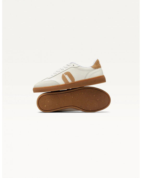 Découvrez Lucia, notre basket basse blanche et beige pour femme. Dessinée par Charlotte dans notre QG parisien, elle est conçue pour minimiser l'impact carbone. Fabriquée au Portugal, elle associe suède et cuir certifié LWG. La doublure et la semelle intérieure sont en mesh. Lucia est dotée d'une semelle (re)colte : la première semelle fabriquée à partir du recyclage de vos chaussures usagées récoltées dans nos boutiques. Le cousu Strobel, une technique de montage traditionnelle, complète le modèle. Les lacets en coton organique ajoutent une touche responsable.