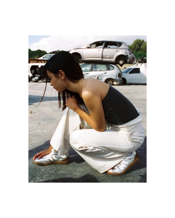 Baskets de sport en cuir avec détails de couleurs contrastées. Languette en cuir et préformée avec rembourrage figuré. Vues de la doublure en cuir. Lacets plats interchangeables en coton bicolore. Col légèrement rembourré. La partie avant est dotée d'un renfort de couture. Semelle flexible en caoutchouc/caoutchouc qui offre durabilité et adhérence. Il porte le nom du modèle « GOAL » sur le côté en vieil or.