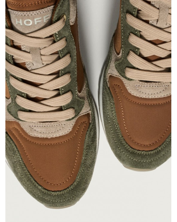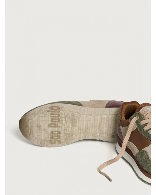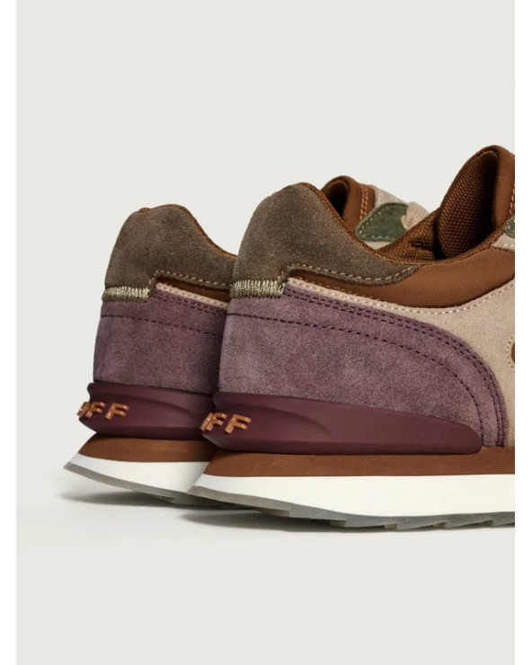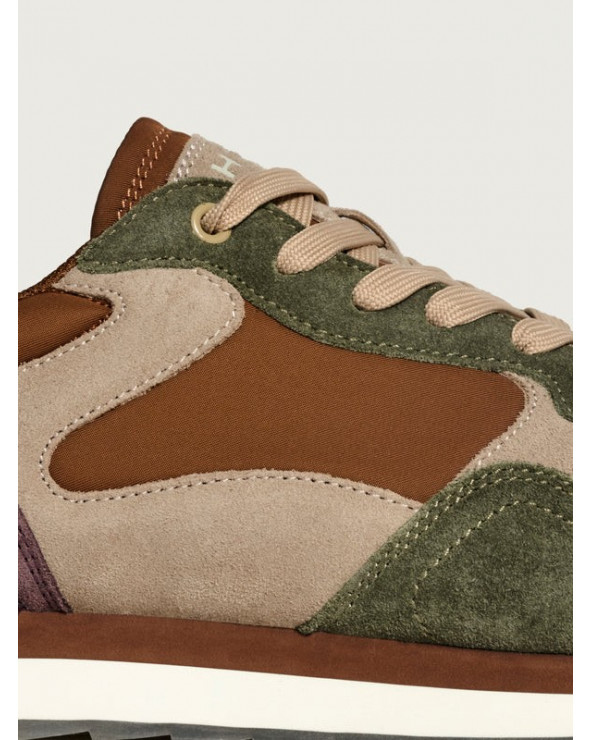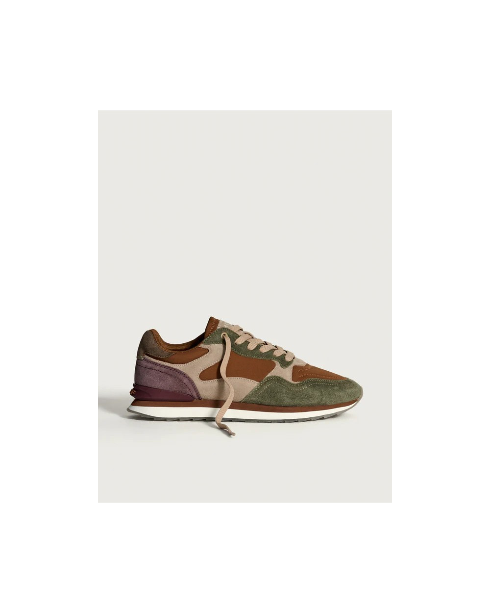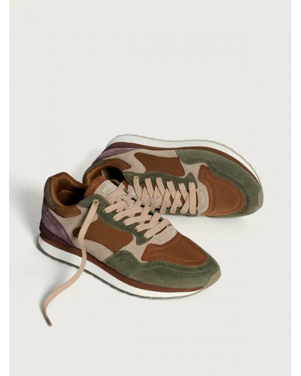 Sneaker de style rétro en combinaison de couleurs et de matières. Détail de logo à l’arrière. Semelle imprimée. Fermeture par lacets.