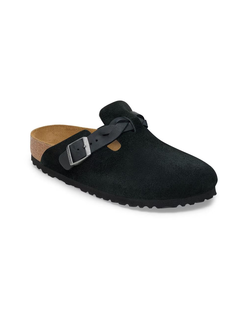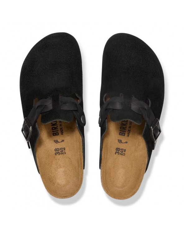 Grand classique BIRKENSTOCK, le sabot Boston se porte en toute saison. Avec son design raffiné et sa largeur réglable individuellement, le sabot Boston figure parmi les produits cultes de la marque. Cette chaussure arbore ici un détail particulier : des brides tressées, qui se marient parfaitement à un style bohème actuel. Sa tige a été confectionnée dans un cuir velours particulièrement doux qui drape le pied comme une seconde peau.