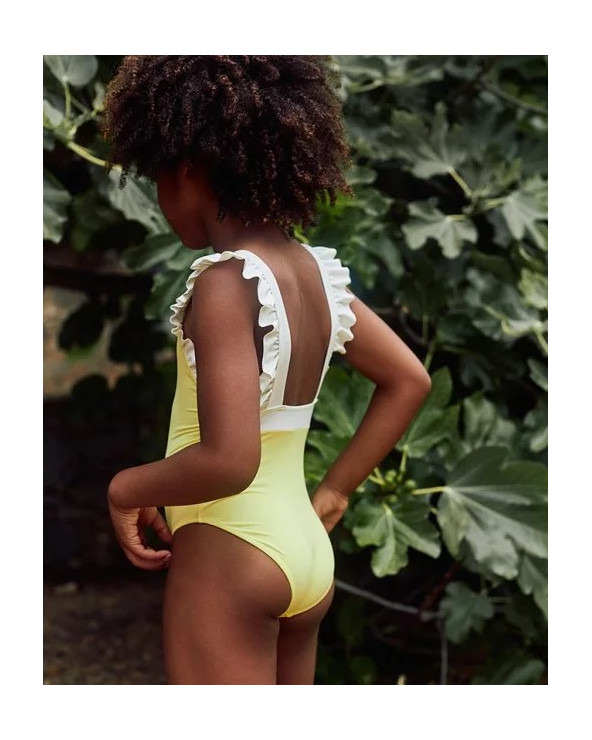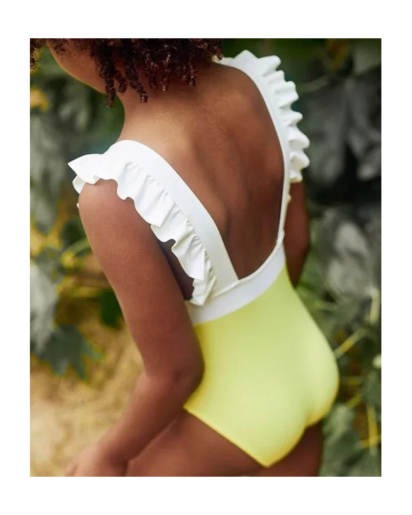 Pointu et singulier, Lauren est sans aucun doute, le maillot de bain anti-uv le plus ciselé de notre collection ! Certifié UP50+, il protège intégralement le buste de notre petite fille ou bébé, des rayons nocifs des UV. Les jolies bretelles volantées viennent habiller un dos légèrement échancré, pour un look qui fait Wahou !