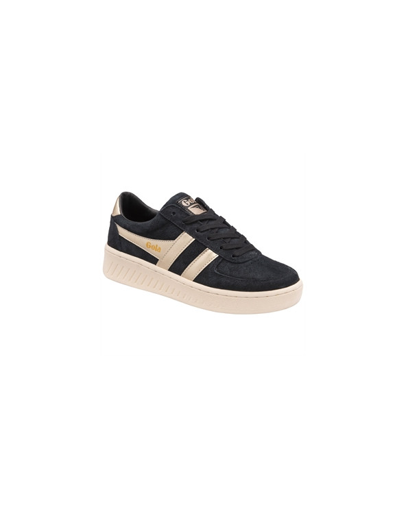 Gola’s classic court Grandslam comes in a number of suede options for women this season, including this wardrobe essential, Grandslam Pearl in black.  A sumptuous suede upper is combined with a metallic pearlised trim and heel tab and is finished with an off white sole unit.  As a classic, heritage inspired women’s trainer, Grandslam Pearl teams perfectly with a number of the season’s key looks for women, wear with your favourite denim or cargos.