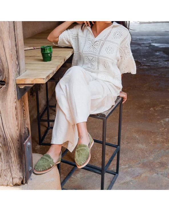 Cet été, on se met au vert avec nos huaraches Alegre Suede Olive. Coup de cœur absolu pour le plus confortable des mocassins en cuir tressé.
