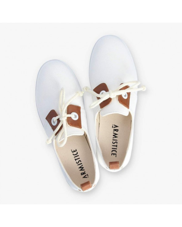 La Stone One s’affiche dans une version épurée totalement dans l'air du temps avec son dessus en coton recyclé* blanc. Un basique incontournable de tout vestiaire juste twisté par des patchs camel. Cette petite tennis blanche respecte les codes Armistice avec ses œillets oversize, ses lacets en corde et sa fine semelle en caoutchouc. Intemporelle, elle se porte en toutes circonstances.
