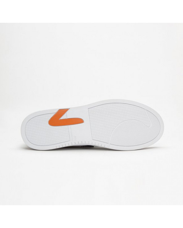 Leather Terry cotton lining Black Z-stitch logo Black back tab HUB Orange Z-stitch logo on right foot outsole White cotton laces White rubber outsole Gel padded insole