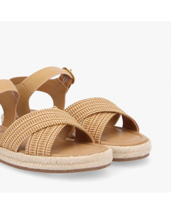 Inspirée d’une tendance artisanale, la COSTA CROSS se joue dans une version tissée avec de jolies brides mixant le camel, le rose et le doré sur l’avant du pied. Un esprit authentique accentué par des brides camel autour de la cheville et une semelle en corde tressée. Cette petite sandale pétillante se ferme par une boucle dorée siglée qui n’est pas sans rappeler les oeillets oversize Armistice.