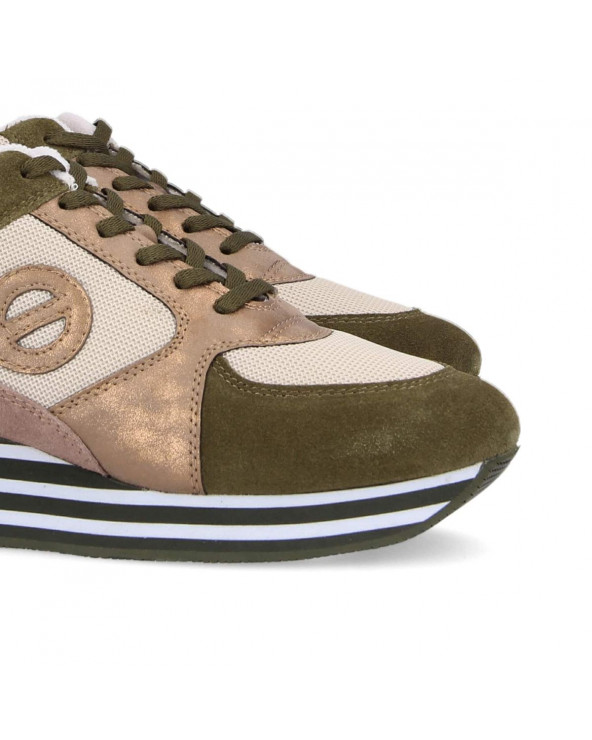 La PARKO JOGGER s’impose avec style dans le vestiaire féminin grâce à sa ligne sportive et son mélange de matières. Cette sneaker dynamique mixe une toile mesh écru à différents types de cuir, tous déclinés dans des couleurs chaudes. Avec son patch verni au talon et sa célèbre semelle striée noire et blanche, cette NO NAME t’assure une allure stylée jusqu’au bout des pieds.