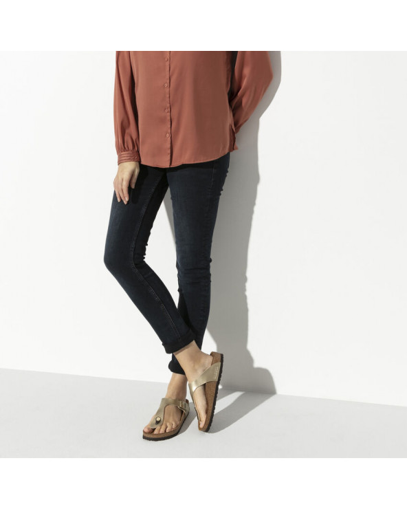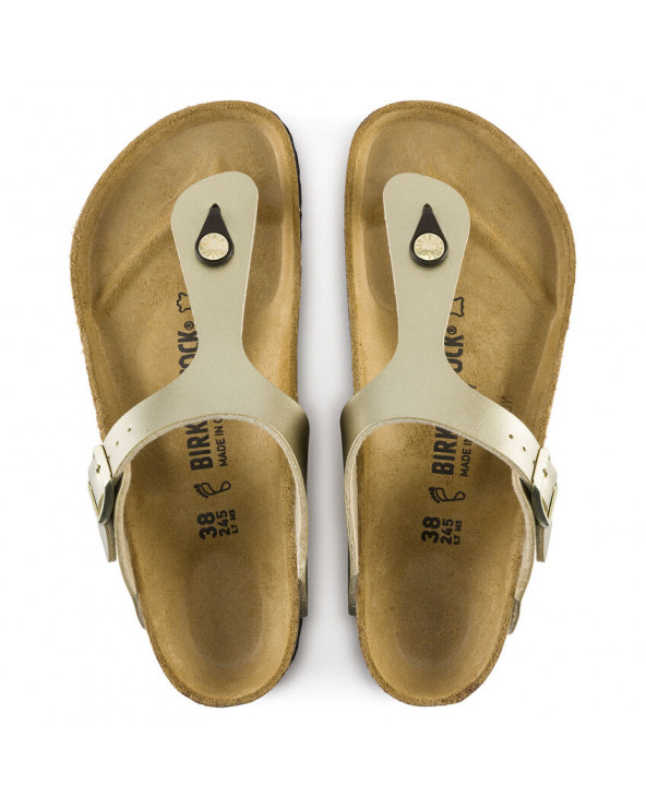 Grand classique BIRKENSTOCK, la Gizeh est une chaussure stylée multitalent. Notre élégante sandale à entre-doigts affiche un design minimaliste tendance, tout en offrant un maintien parfait. La présente variante arbore une brillance métallisée. Sa tige est confectionnée en Birko-Flor®, un matériau synthétique doux et résistant.