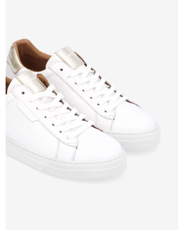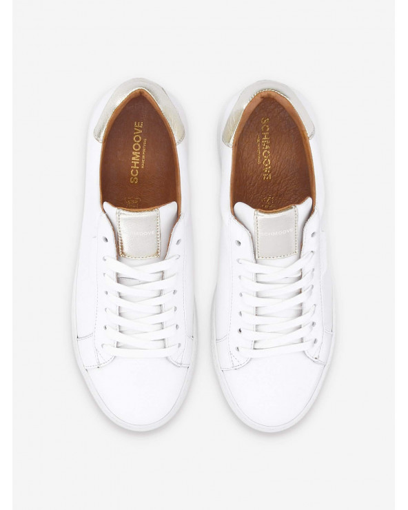 Schmoove propose une ré-interprétation chic et glamour de la basket blanche avec cette Spark Clay. Réalisée en cuir lisse blanc, elle s'illumine de subtils accents en cuir métallisé doré qui ornent délicatement le talon et la languette, agrémentés d'un logo blanc. Avec son design épuré, cette basket est l'accessoire incontournable pour sublimer toutes les tenues féminines. Grâce à sa semelle en caoutchouc qui épouse la forme du pied, renforcée par une piqûre latérale, elle offre confort et résistance.
