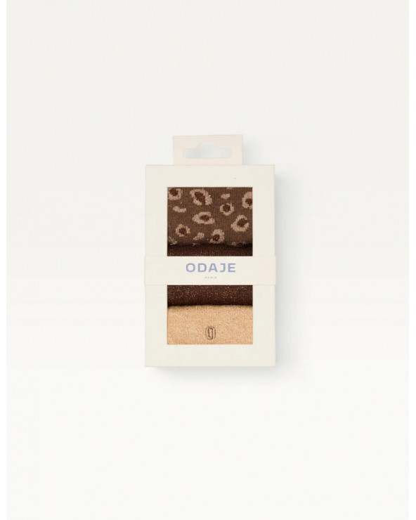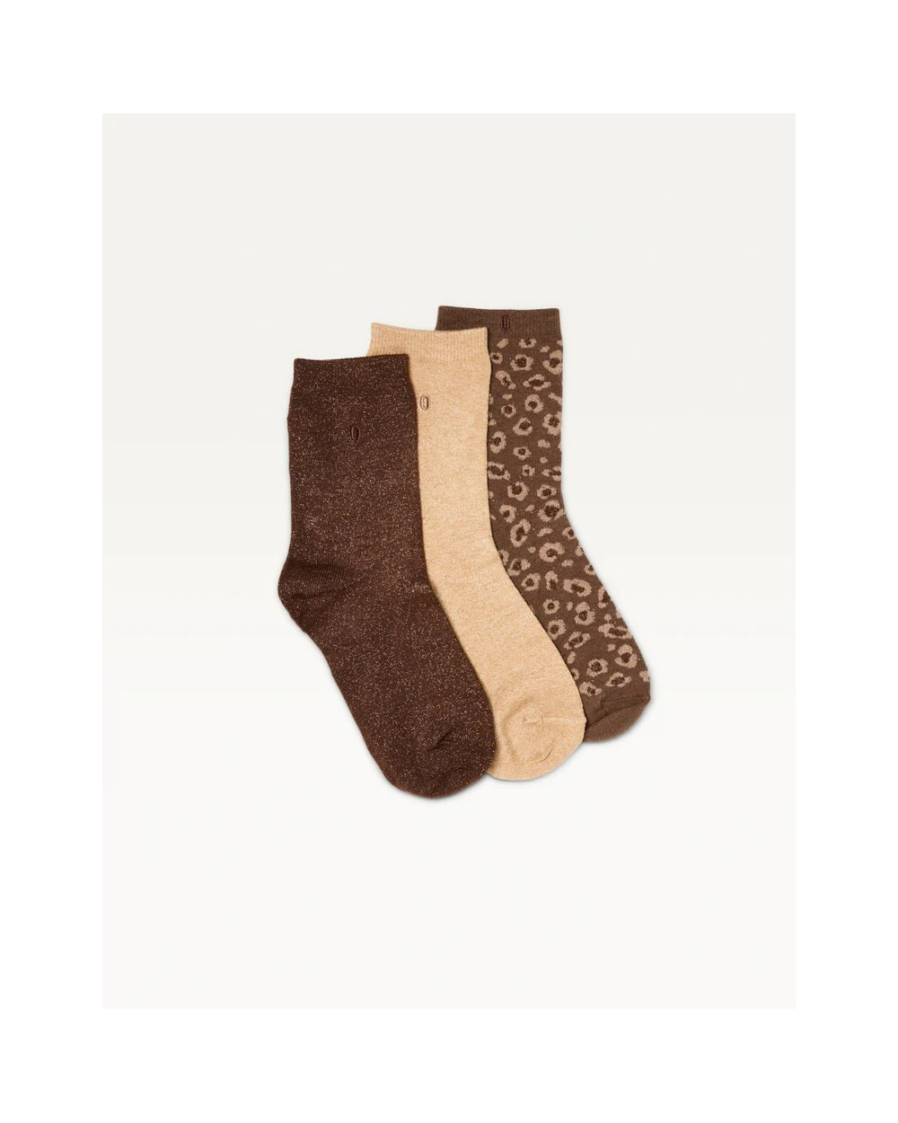 Pack de 3 Chaussettes - Fantaisie paillettes et leopard marron doré