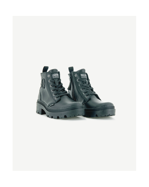 La chaussure Pallabase en cuir fait passer l’iconique Pampa au niveau supérieur. Une chaussure féminine avec un talon plus haut et caractéristique de Palladium, notamment grâce à son iconique embout en caoutchouc. Cette chaussure en cuir souple complète parfaitement votre tenue urbaine.