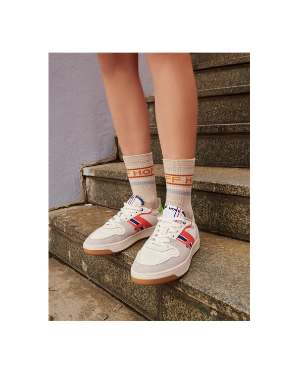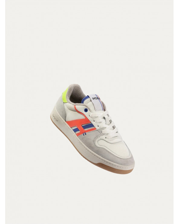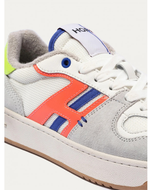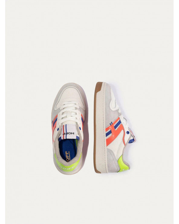 Baskets style tennis avec pièces latérales en cuir et tissu.