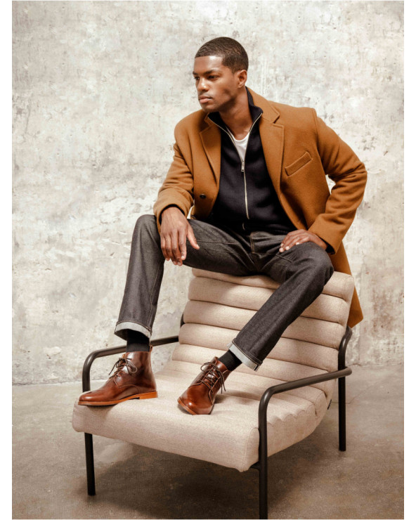 Semelle en cuir cousue Blake dotée d'un patin en caoutchouc injecté et d'une trépointe avec couture