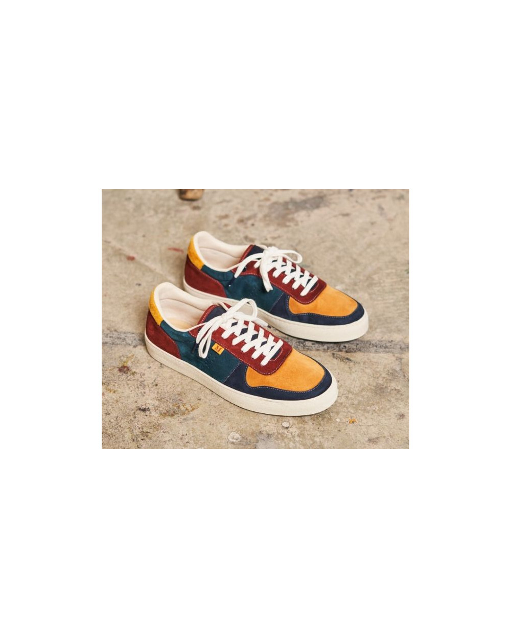 - Baskets basse en suède Bordeaux Bleu et Vert