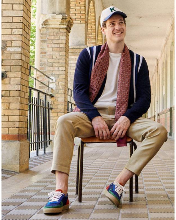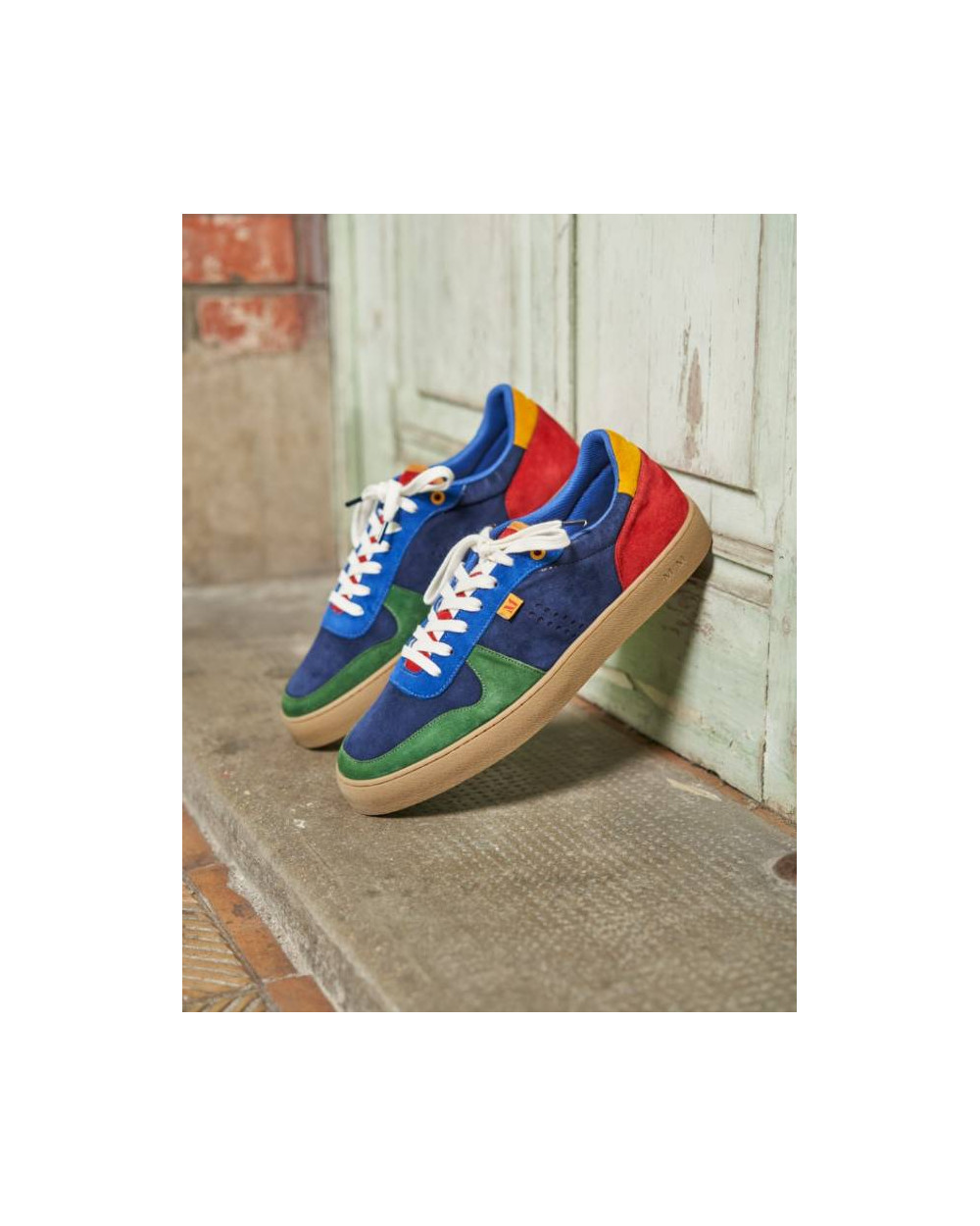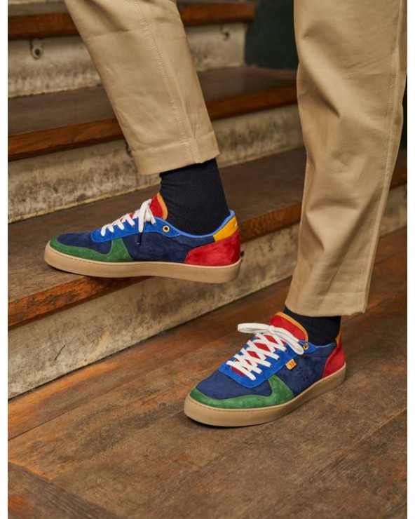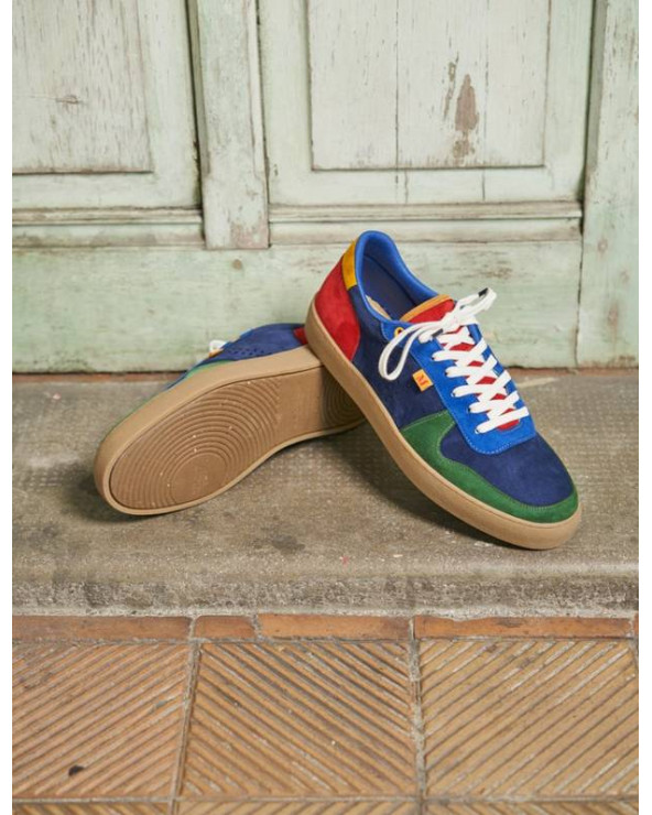 New kid on the block. Jeu de découpes, mono-œillet oversize, détails perforés : Arthur joue à fond la carte rétro-sport. En suède sapin, marine et bleu, cette basket basse clame haut et fort son inspiration 80. Le tout sur notre semelle [Re]colte, fabriquée à partir de chaussures recyclées.