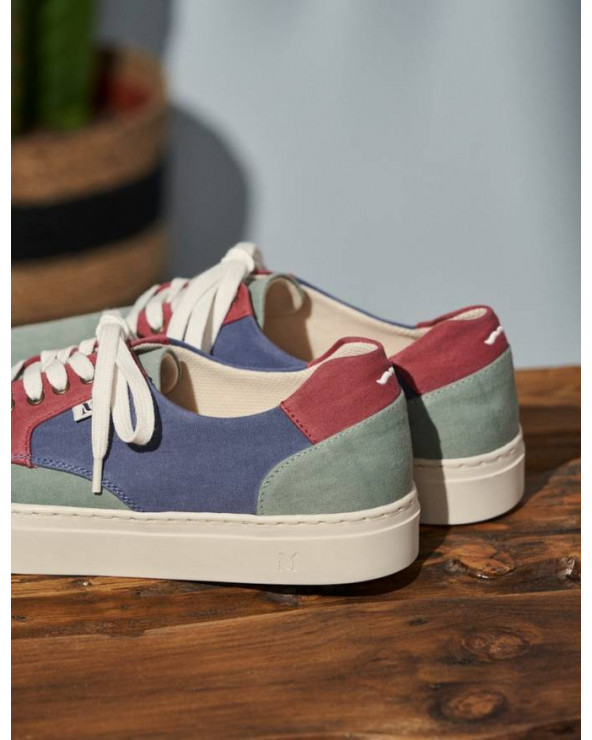 Alexandre le green. Dans sa version en toile olive bordeaux et bleu gris, cette basket est recyclée à 60 % – avec une tige composée de 70 % de coton recyclé et 30 % de viscose, et une semelle [Re]colte fabriquée à partir de chaussures recyclées. Et ce n'est pas tout : elle est montée en cousu Strobel, une technique artisanale qui permet un maximum de souplesse. Fabriquée au Portugal et proposée à prix doux, elle deviendra vite votre basket d’été préférée…