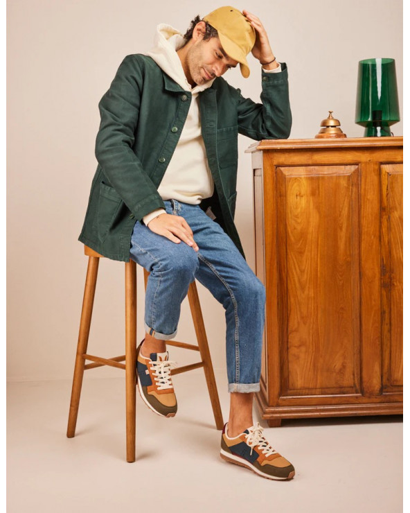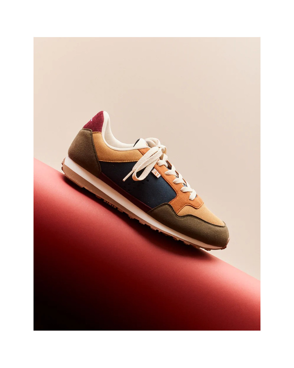Notre basket pour homme Gabriel est 100% vegan. Dotée d'une semelle en EVA et d'un patin en gomme recyclée, elle allie à la perfection confort, souplesse et durabilité. Sa doublure et sa première de propreté en mesh recyclé offrent une respirabilité optimale, tandis que les lacets en polyester recyclé complète ce modèle éco-responsable. Grâce à sa construction cousue Strobel, cette sneaker garantit une solidité exceptionnelle. Avec une hauteur de semelle de 2,5 cm, Gabriel en suède vegan kaki, beige, terracotta présente une forme sport vintage, tout en proposant un style néo-sport éclectique pop. Ses lignes simples sont audacieusement bousculées par un mélange de matières et de couleurs fantaisistes, créant ainsi une esthétique technique et dynamique.