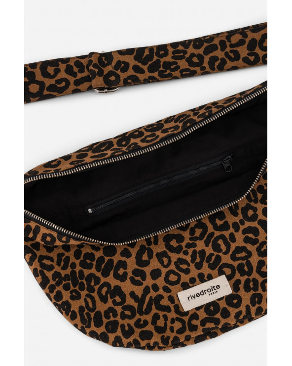 Custine XL version Léopard va devenir votre indispensable. Vous allez adorer sa forme arrondie et sa grande poche intérieure zippée qui vous permettra de séparer vos affaires à l'intérieur. Avec Custine XL, plus besoin de sac pour emporter portefeuille, chargeur, téléphone, lunettes, médicaments, masques etc. Sa taille s'ajuste hyper facilement grâce à sa anse réglable.