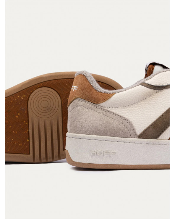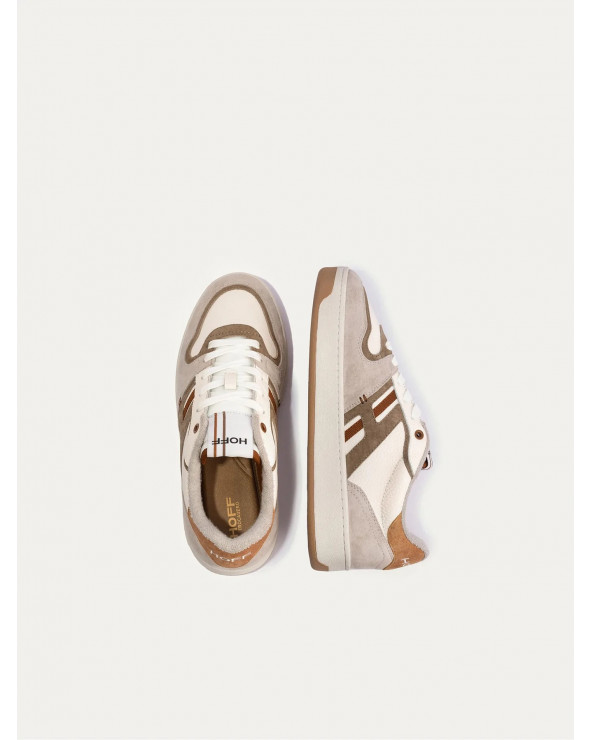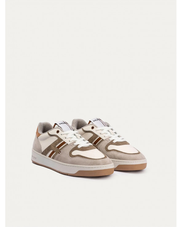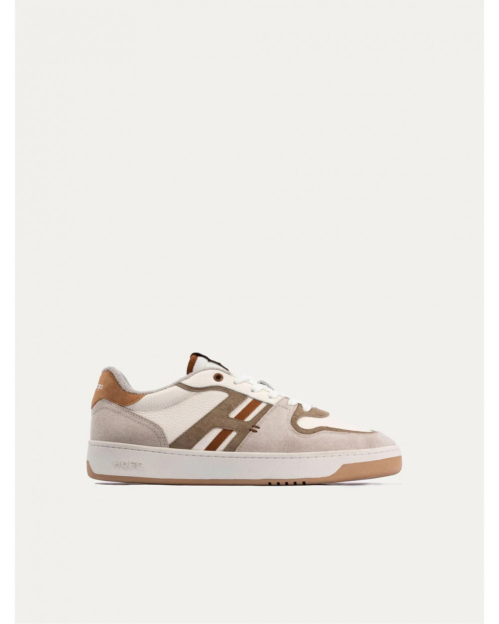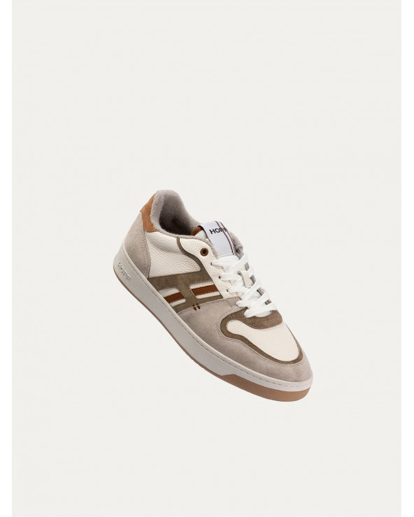 Baskets style tennis avec pièces latérales en cuir et tissu.