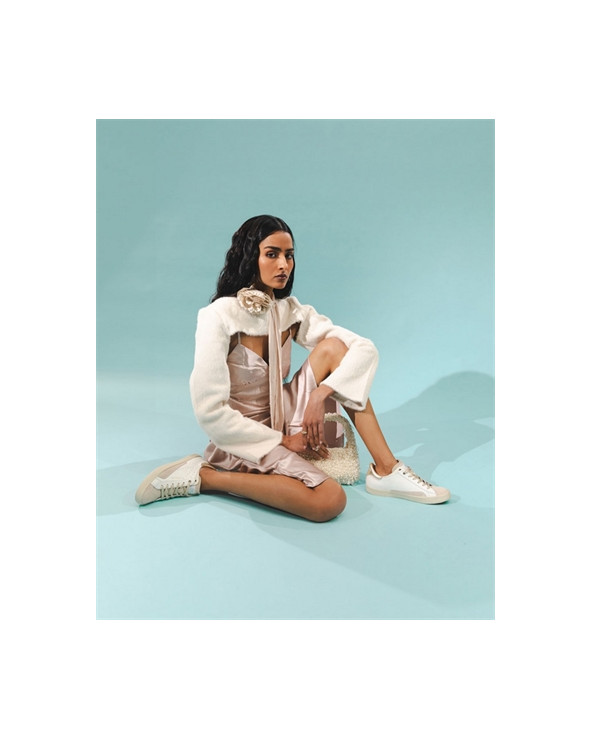 Blanc, beige et or, cette palette de couleur pleine de douceur est incontournable. D’apparence simple, mais aux détails subtils : une touche de cuir craquelé pour une allure moderne et des lacets dorés pour le côté chic font de cette paire la chaussure facile à combiner.