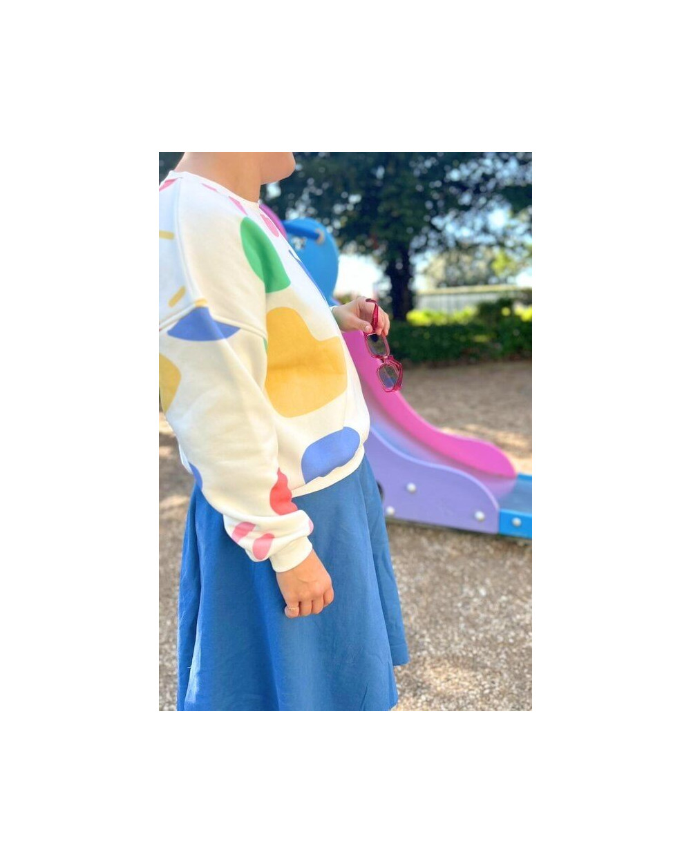 Découvrez notre sweat au motif Miro pour femme, une explosion de couleurs qui allie style et douceur. Une coupe oversize légèrement crop, avec une emmanchure basse pour un look rétro-contemporain. Les manches 7/8ème et la matière douce en coton offrent un confort optimal. Molletonné à l'intérieur pour encore plus de douceur, ce sweat deviendra rapidement un incontournable de votre garde-robe.